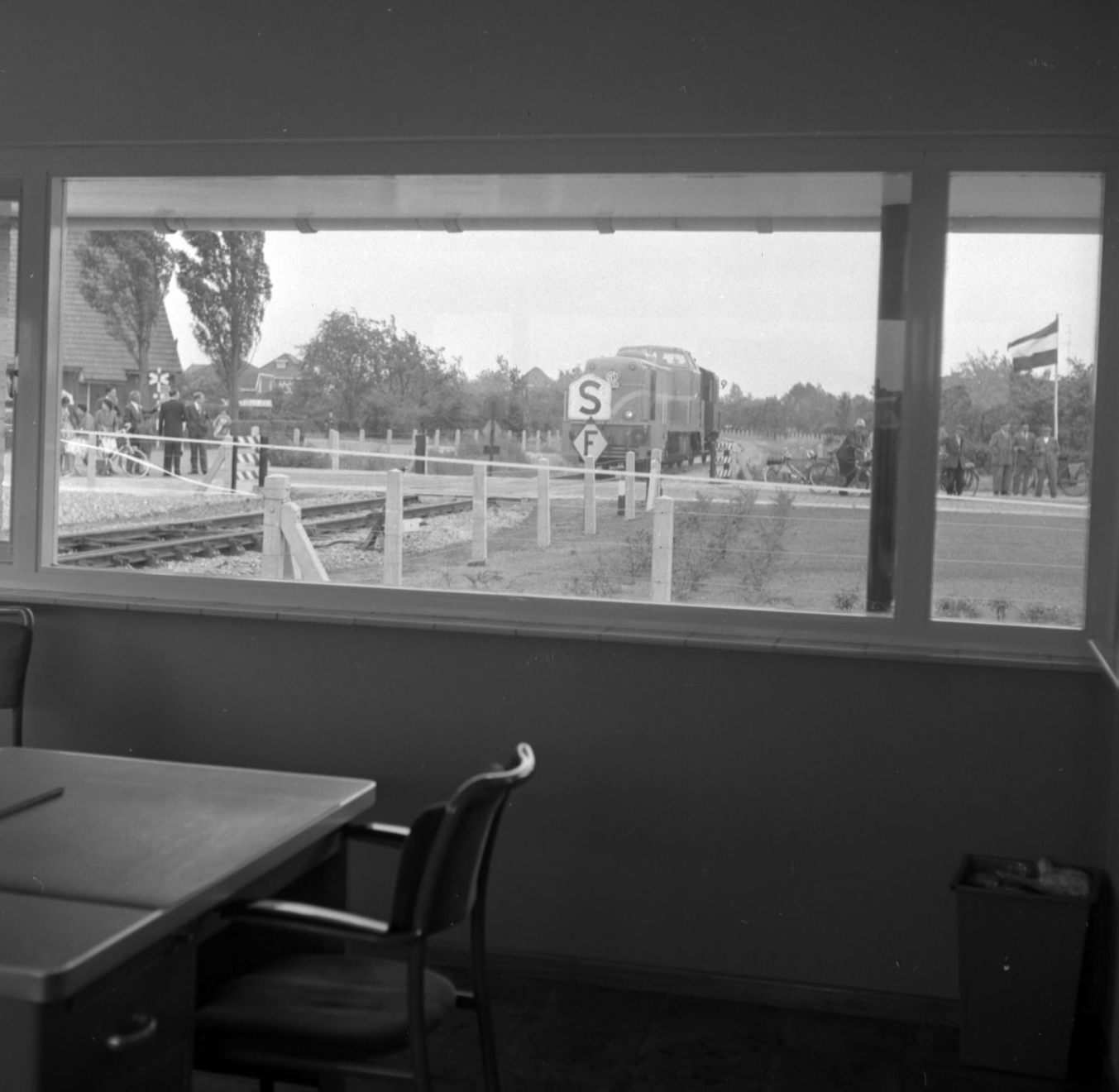 En, wat nieuw is, moet natuurlijk ook feestelijk worden geopend. De hoge heren die het toen voor het zeggen hadden dachten bij de opening van een stationsgebouw in Valkenswaard waarschijnlijk in eerste instantie weer aan een lekker sigaartje. Schreven wij hier enkele weken terug al over de douceurtjes die werden uitgedeeld ten tijde van de opening van heliport Eindhoven, ook nu viel er hier en daar een sigaartje van de trein. Op 4 februari 1959 was de opening van de nieuwe spoorlijn. Om 9.28 uur vertrok de Blauwe Engel - zo genoemd vanwege de helderblauwe kleur die de treinstellen aanvankelijk hadden - voor de laatste rit via Aalst-Waalre naar Valkenswaard. Op de overweg Willemstraat werd even halt gehouden om geschenken aan te bieden aan Directie van de NS. en het gemeentebestuur. Op het oude station Gestel werd een ‘Typisch Brabants’ geschenk aan de directie van de NS aangeboden. Idem in Aalst-Waalre. In Valkenswaard neergestreken, overhandigde de burgemeester ‘attractieve producten van zijn nijvere gemeente’. In Hasselt stond een koffietafel klaar, waarna de terugreis werd aanvaard via Geldrop. Eenmaal terug in de restauratie van station Eindhoven wachtte de heren een laatste presentje. De mannen kregen elk een hoge hoed van Spoorenberg, als zijnde ‘een bijzonder product van een exclusieve Eindhovens industrie’. Wellicht dat de hoed zo groot was dat alle presentjes daarin meegenomen konden worden, want er moest ook nog een doos damast, een peperkoek, een doos bonbons en een worst mee naar huis. Maar ook het sigaartje was van de partij, getuige de dankbrief van President Lohmann van de NS aan de gemeente Valkenswaard: ‘Mag ik u mede namens mijn delegatie dankzeggen voor de aardige attentie om in de trein rookgerei voor de gasten uit te delen?’ De koek was nog steeds niet op. In hetzelfde jaar, op 30 juni, werd het nieuwe stationsemplacement in Valkenwaard geopend. Op de foto gemaakt op deze dag zien we een locomotief aankomen om een lint door te rijden. Na koffie en gebak in het stationsgebouwtje werd koers gezet naar Hotel Concordia in Valkenswaard. Of daar nog een sigaartje afviel? Dat blijft in het rookgordijn van de geschiedenis gehuld. Wel werd er heerlijk gedineerd met Hors-D’oeuvre Choisis, een Truite Meuniére, Poulet Sauté Marengo, Bombe Dame Blanche, Zwicker, Pomerol, Champagne en tot slot een Moka, oftewel een bakje troost.