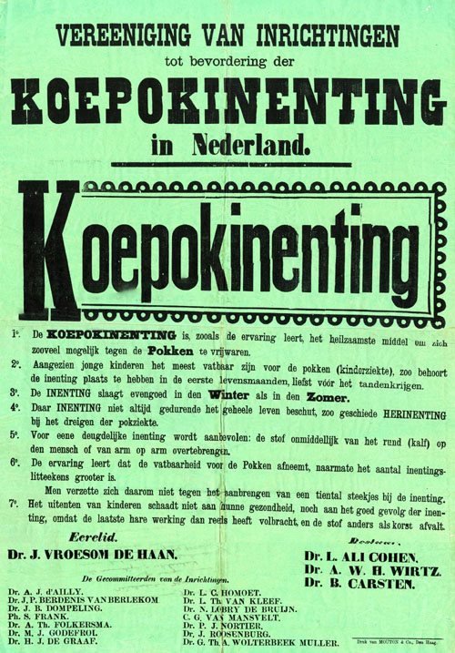 Fotobijschrift: Bekendmaking van koepokinentingen door de Vereeniging van Inrichtingen tot bevordering der Koepokinenting. Datering : 1850 – 1850