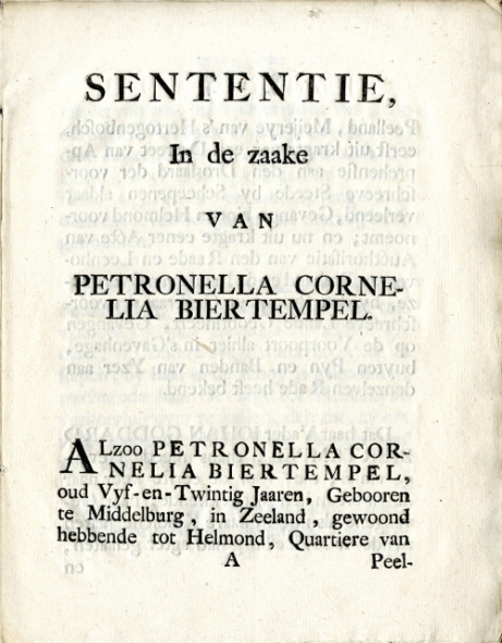 We schrijven het jaar 1774. Voor de Raad van Brabant in ’s-Gravenhage dient de zaak van Petronella Cornelia Biertempel.