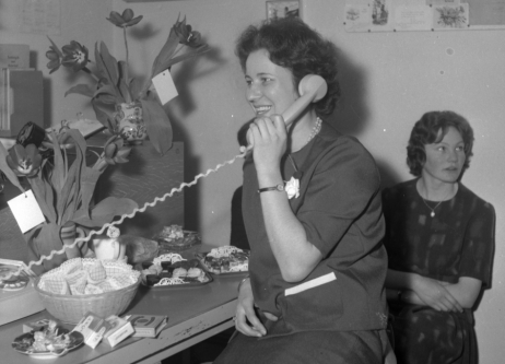 De telefoon staat roodgloeiend. De hele ochtend al. Spierpijn in de wangen heeft ze van de dikke glimlach die sinds het heuglijke nieuws op haar gezicht lijkt gebeiteld. Tussen twee telefoontjes en het aannemen van weer een bloemstuk door steekt ze snel een Berlinda sigaret op om even op adem te komen. Het is toch wel een bijzondere ervaring om zo in het middelpunt van de belangstelling te staan. Normaal gesproken cijfert ze zichzelf weg voor chef en bedrijf. Maakt afspraken, stenografeert vergaderingen, ontcijfert onmogelijke kattebelletjes en handschriften en tovert die vakkundig en gezwind om in brief, memorandum of verslag. Foutloos uiteraard. O ja, en tussendoor verwijdert ze nog een ontsierende vlek op de chef zijn nieuwe stropdas en regelt ze een nieuw kopje koffie voor hem en zijn gasten. Genereus als ze is trakteert ze iedereen die vandaag langs komt op een heerlijk gebakje, bonbonnetje of sigaret. Keus te over. Haar collega waarmee ze leven en schrijven kan zoekt vandaag gepast de luwte op.