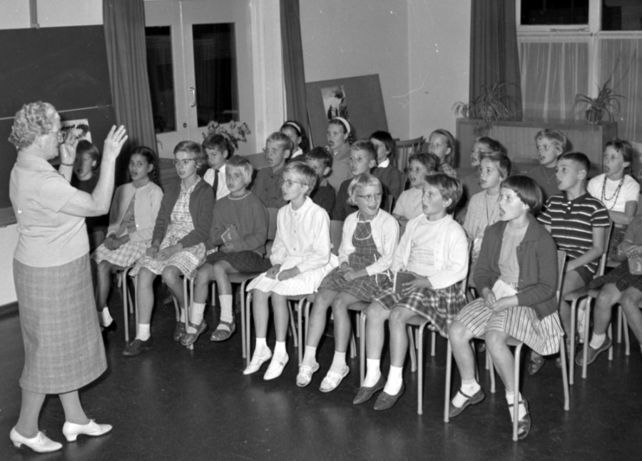 Welnu, welke schoolklas of kinderkoor zien we hier in bedrijf? Herkent u uzelf, uw vroegere buurmeisje of -jongen en of uw allereerste liefde? Reageer dan a.u.b. op dit bericht.
