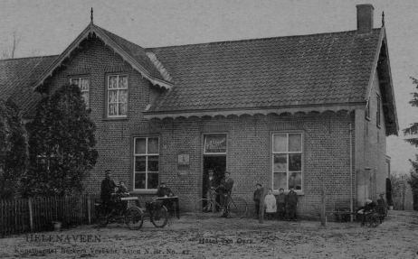 Ook al konden ze Helenaveen zien, de tocht over die ontzettende vlakte zou nog uren kosten. Aan de spoorbaan bij de “halte” werd weer een potje bier gedronken. Daar horen ze dat het in Helenaveen kermis is. Onderweg naar hun beoogde logement van Van Oers komen ze diverse kermisvierders in “diverse stadiën van feestvreugde” tegen, die denken dat Goethart en Vuijck muzikanten zijn, op weg naar de kermis waar ze hun vrolijke klanken zullen laten klinken. In de schemering komen ze in Helenaveen aan. Boven de deur van een lokaliteit lezen ze de naam “den Oes”. Daar moesten ze zijn. Maar “den Oes” kwam toch echt niet over als een hotel. Het bleek pas verbouwd te zijn, zodat alles, van binnen en van buiten, ruwe stenen muren vertoonde. Het zag er zeer onooglijk uit. Voor het hotel stonden een paar koekkramen met een hoop volk. De gezelschapskamer was gevuld met “mannen, die er hun pijp rookten onder het genot van bier en luisterend naar iemand die op de viool speelde en nu en dan een ander accompagneeerde. De laatste was een hollandsche komiek, die berijmde liederen voordroeg, zeer ten genoegen van de luisterende mannen.” Onze wandelaars kenden die liedjes niet. Ze vonden ze ook niet zo netjes om in groter kring bekend te maken.