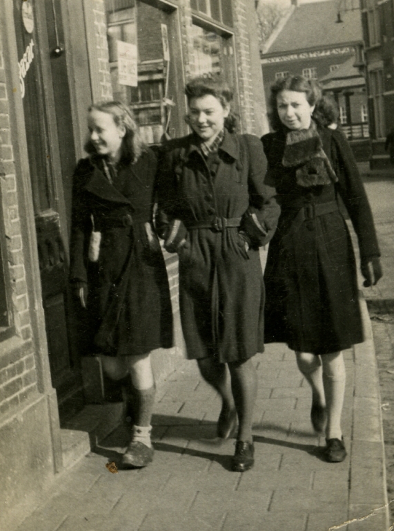 De foto is gemaakt in de Tweede Wereldoorlog door straatfotografen. De drie meisjes van vijtien jaar liepen terug naar huis vanuit de Tweka. De Tweka was een textielfabriek waar ze onder andere badpakken maakten. Het linker meisje is Maria Vermeulen. Ze begon daar te werken toen ze vijftien jaar was, omdat haar twee broers in Duitsland moesten werken en haar oudste zus al op hele jonge leeftijd kanker had. Bij de Tweka moesten ze om half acht beginnen. Van twaalf tot één hadden ze pauze. In dat uur liepen ze naar huis, aten warm en gingen weer terug naar het werk. Ze hadden natuurlijk geen fiets. Ze hadden helemaal niks. Maria moest werken voor een Duitser. ‘maar wel een héle goeie’, vertelt ze. De Duitser gaf de meisjes namelijk klompen, ondergoed, echt van alles. Het is een groot verschil met nu. Toen was het een luxe om naar school te mogen! Nu kun je je dat gewoon niet meer voorstellen. Tegenwoordig hebben jongeren van vijftien ook al wel baantjes, maar niet voor de hele dag. In deze tijd gaat iedereen gewoon naar school... en is het ook niet noodzakelijk voor jongeren om te werken, terwijl het toen gewoon moest. Of ze het nou wilden of niet. Ze hadden gewoon geen inkomsten. Maar Maria zegt zelf dat ze het heel goed heeft gehad in die tijd vergeleken met andere mensen.