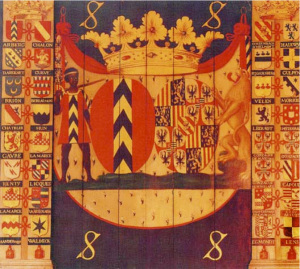 Wapen met zestien kwartieren van Gaspar Cornelis Schade, heer van Tull en ’t Wael uit het einde van de 17e eeuw, getekend door J. Ceulen.